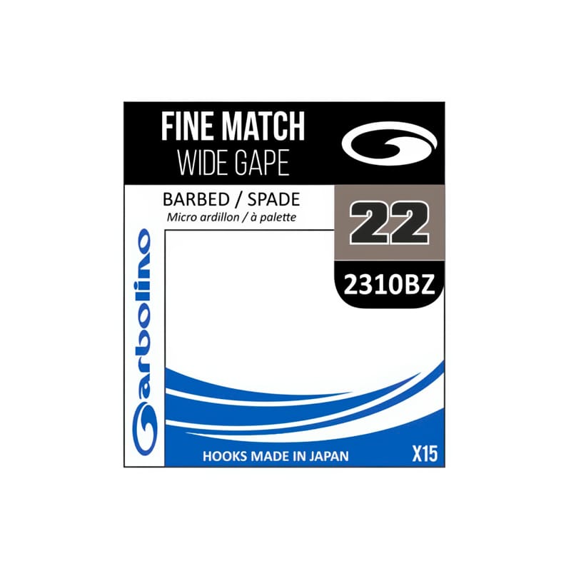 Garbolino FINE MATCH WIDE GAPE kabliukai gaminami naudojant „Fine wire“ technologiją, kuri užtikrina itin ploną vielos skersmenį. Ši konstrukcinė savybė leidžia kabliukui išlikti praktiškai nepastebimam vandenyje ir užtikrina natūralų masalo skendimą, kas yra kritiškai svarbu žvejojant atsargias žuvis. Bronzinė danga suteikia metalui papildomą atsparumą korozijai ir tarnauja kaip puiki maskuotė ant įvairaus tipo dugno.