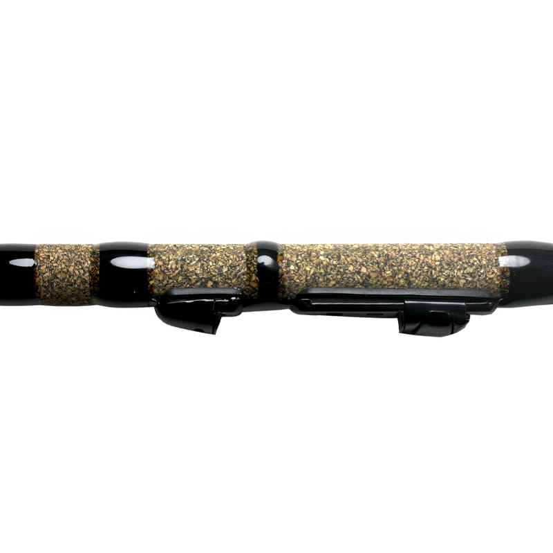 Rankena užbaigta „rubber cork“ (gumuoto kamščio) tipo danga, kuri pasižymi ilgaamžiškumu ir patikimu suėmimu net ir šlapiomis rankomis. Integruotas kabliuko laikiklis suteikia papildomą komfortą keičiant žvejybos vietą.