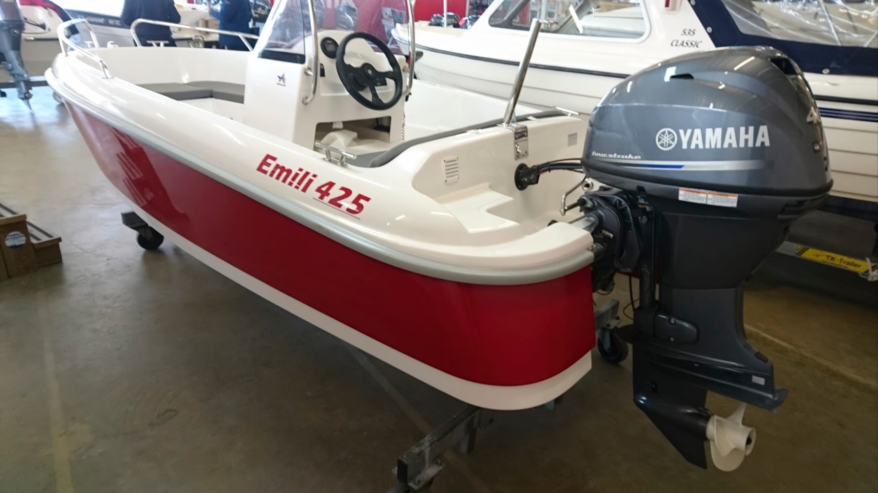 Armplast Emili 425 Sport – tai motorinis kateris, įrodantis, kad tikras plaukimo malonumas nepriklauso nuo laivo metrų skaičiaus. Šis modelis yra sukonstruotas kaip dinamiška platforma, kurioje kiekviena detalė skirta greičiui ir manevringumui. Tai pasirinkimas tiems, kurie vertina galimybę akimirksniu iššokti į vandenį ir mėgautis azartišku plaukimu, išlaikant pilną laivo kontrolę bet kokiomis sąlygomis.