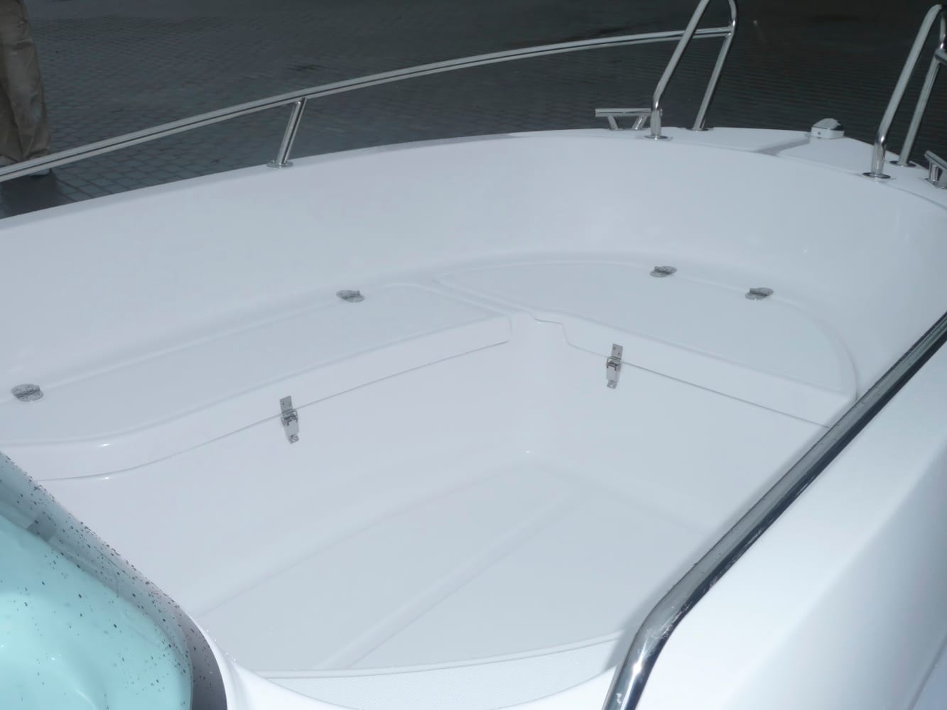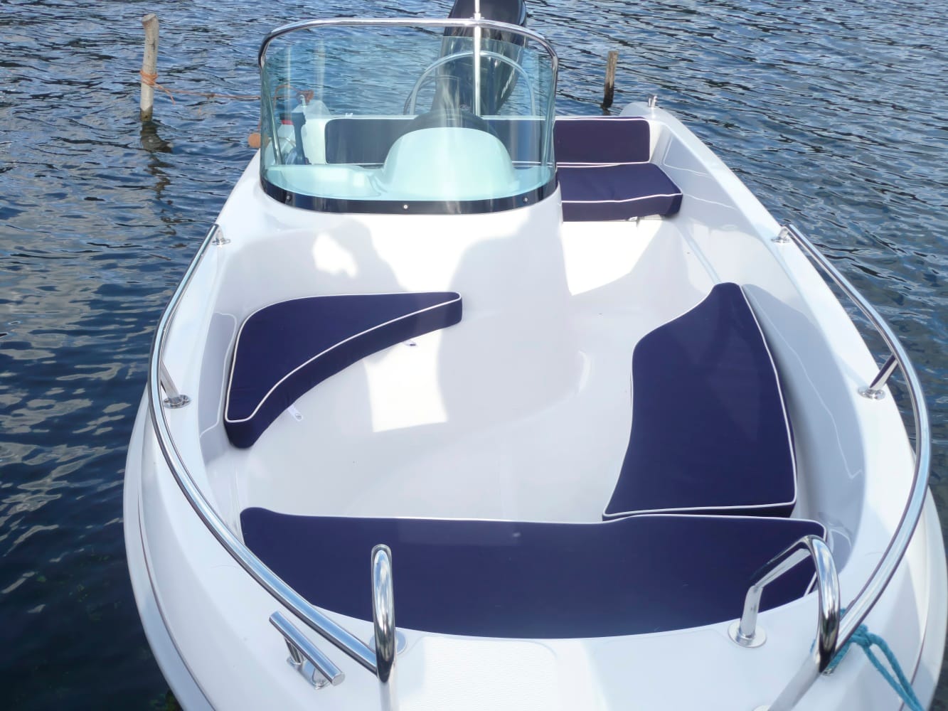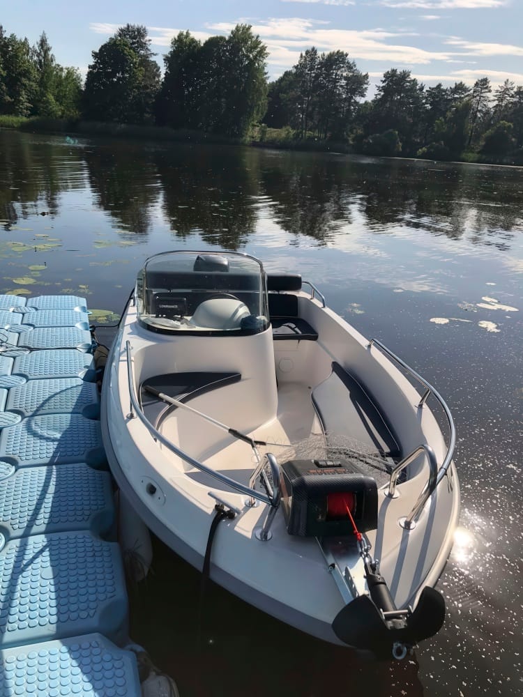 Konstrukcinis standumas: 335 kg korpuso masė (be variklio) indikuoja tvirtą laminavimą ir ilgaamžiškumą.